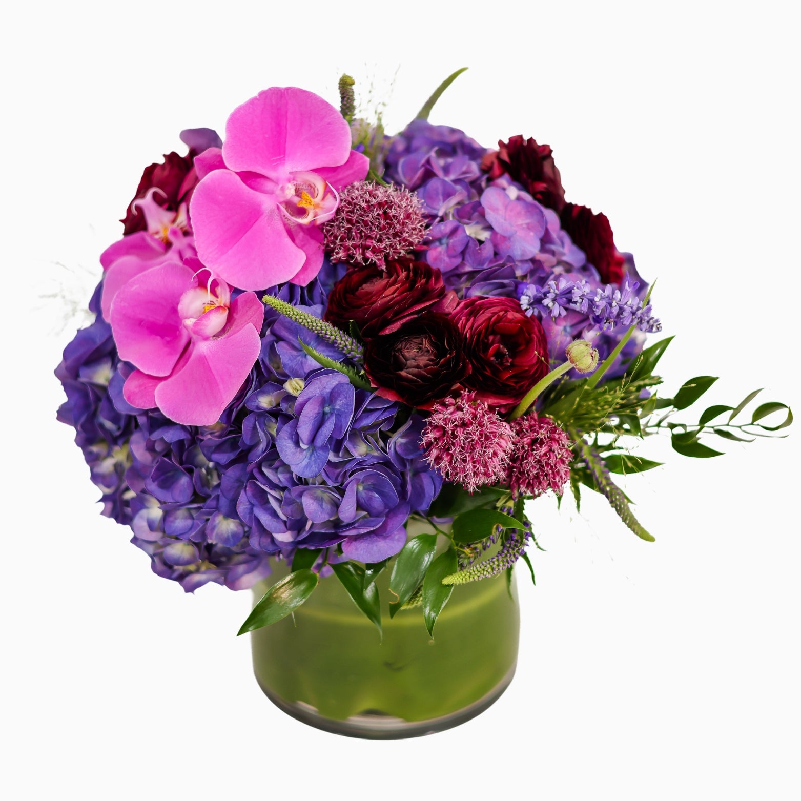 Flowers include but not limited to hydrangeas, orchids, ranunculus, and seasonal variety flowers.