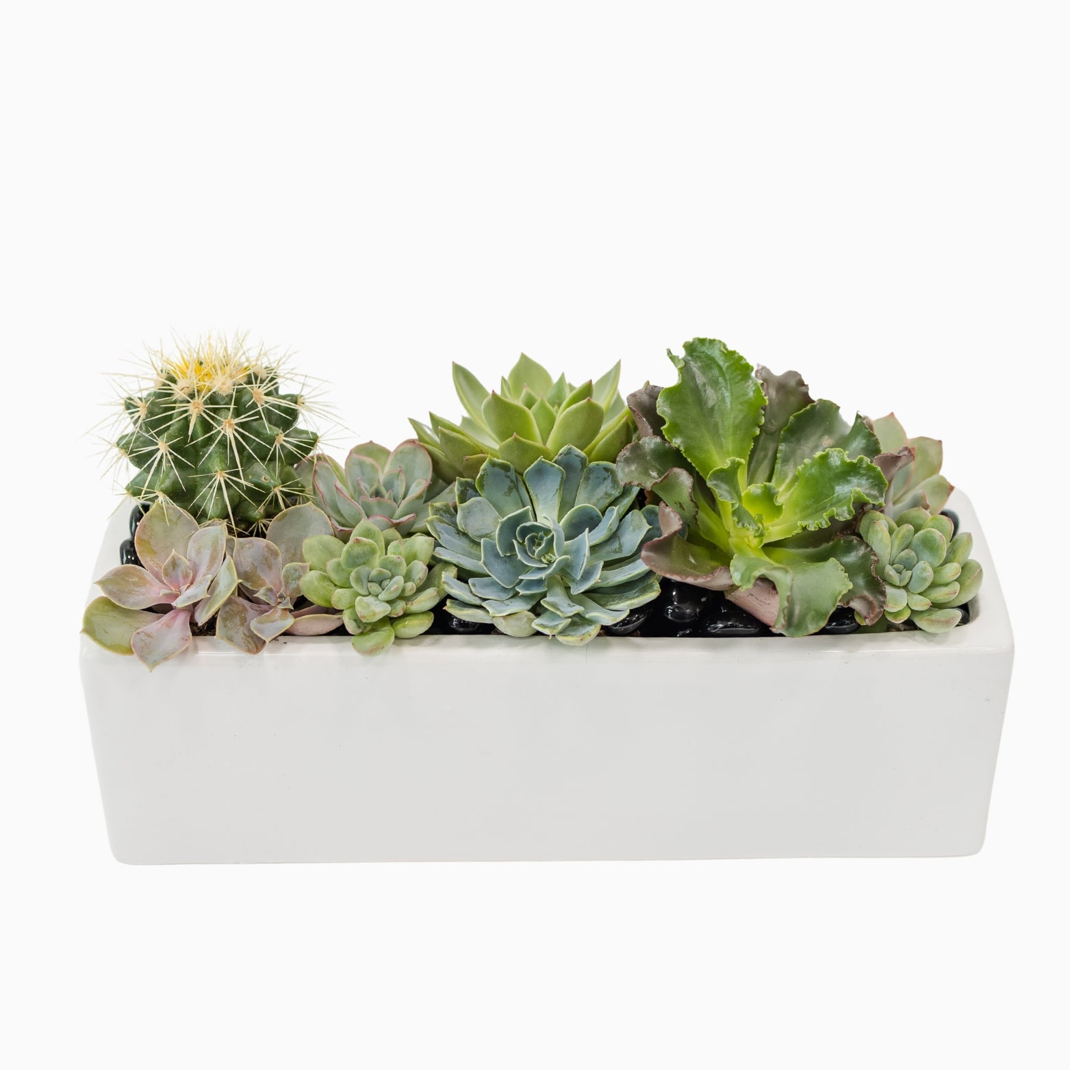 Add a bit of desert beauty to your home with this lovely display of elegant succulents. Enjoy the low-maintenance beauty of Desert Succulents!